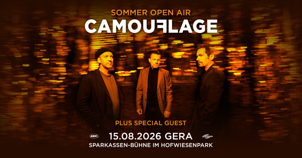(22.09.2025) 20 Jahre nach dem Camouflage das letzte Mal in Gera live gespielt haben, werden sie am 15.08.2026 ein Sommer Open Air Konzert auf der Geraer Sparkassen-Bühne im Hofwiesenpark geben.